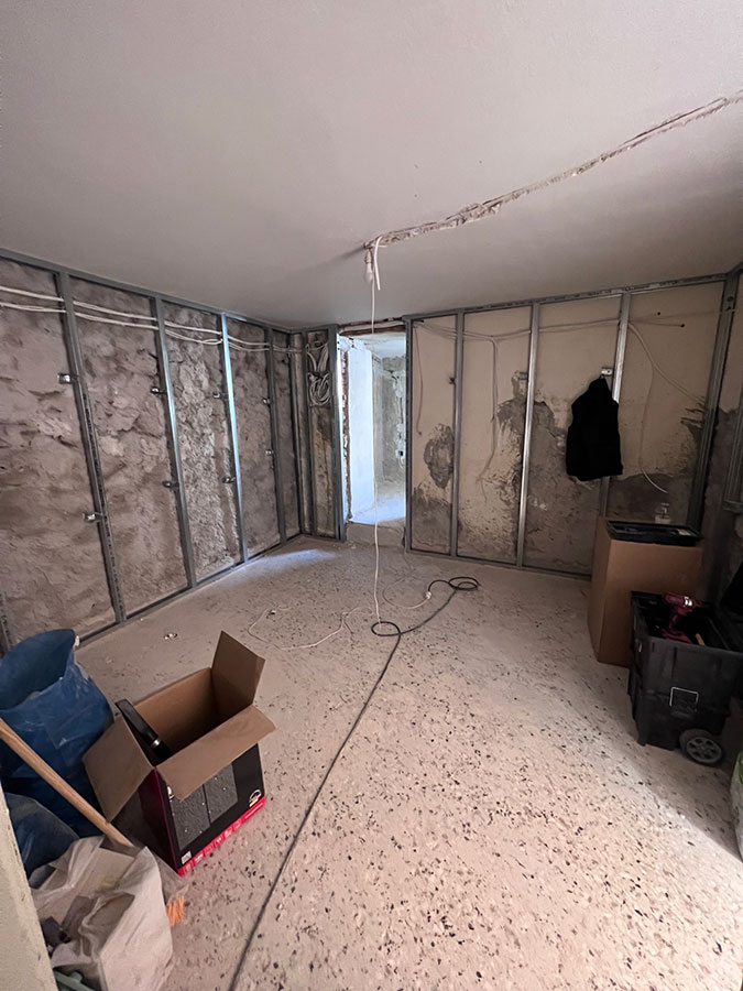 Κατασκευή οροφών, Βαψίματα, επένδυση τοίχων με άνθυγρη γυψοσανίδα, κατασκευή κούτελου με γυψοσανίδα.